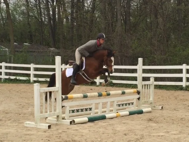 Pip is a top of the line medium welsh mare by top pony stallion Empires Power. Pip is a flashy bay with a big white face and white on all four feet. She is a super fancy mover with a huge step. Pip is brave over fences with a great front end. On top of all that she has an in your pocket personality and thrives on cuddles and treats. She is still owned by the breeders with a solid foundation. Super pony at a super price. Breeder is downsizing so it is a great time to get a pony worth so much more.